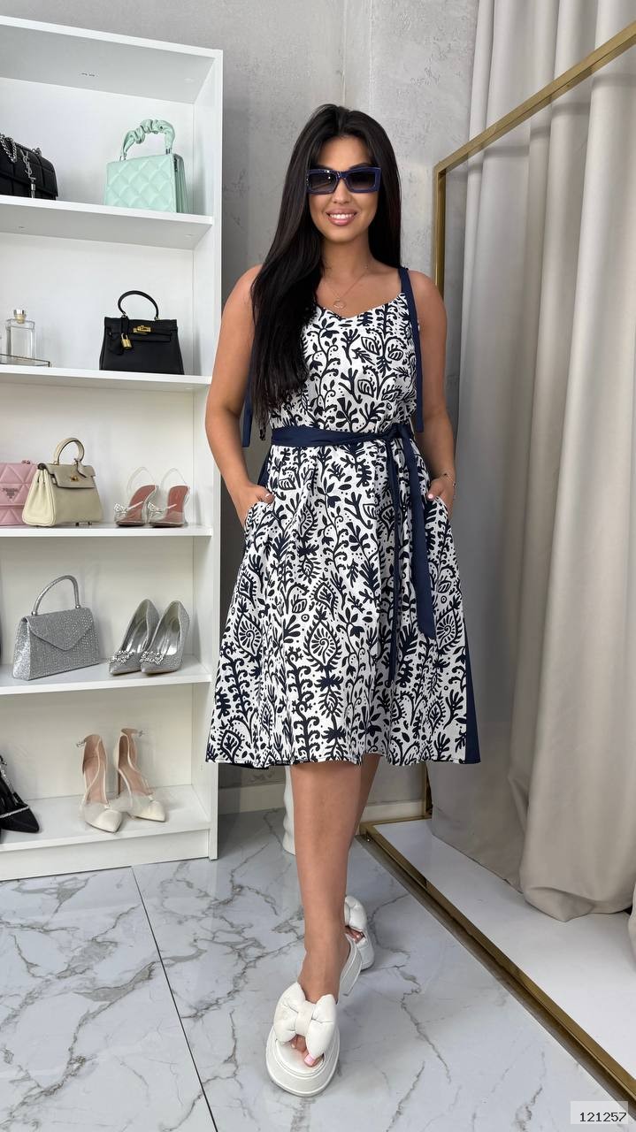 Сарафан на бретелях-завʼязках, не просвічує, пасок у комплекті.