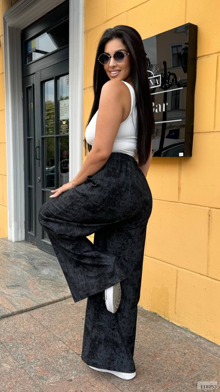 Брюки палаццо - довгі, широкі,зручні,комфортні та м'якенькі. Трикотажні брюки з двома кішенями, поясом на резинці.