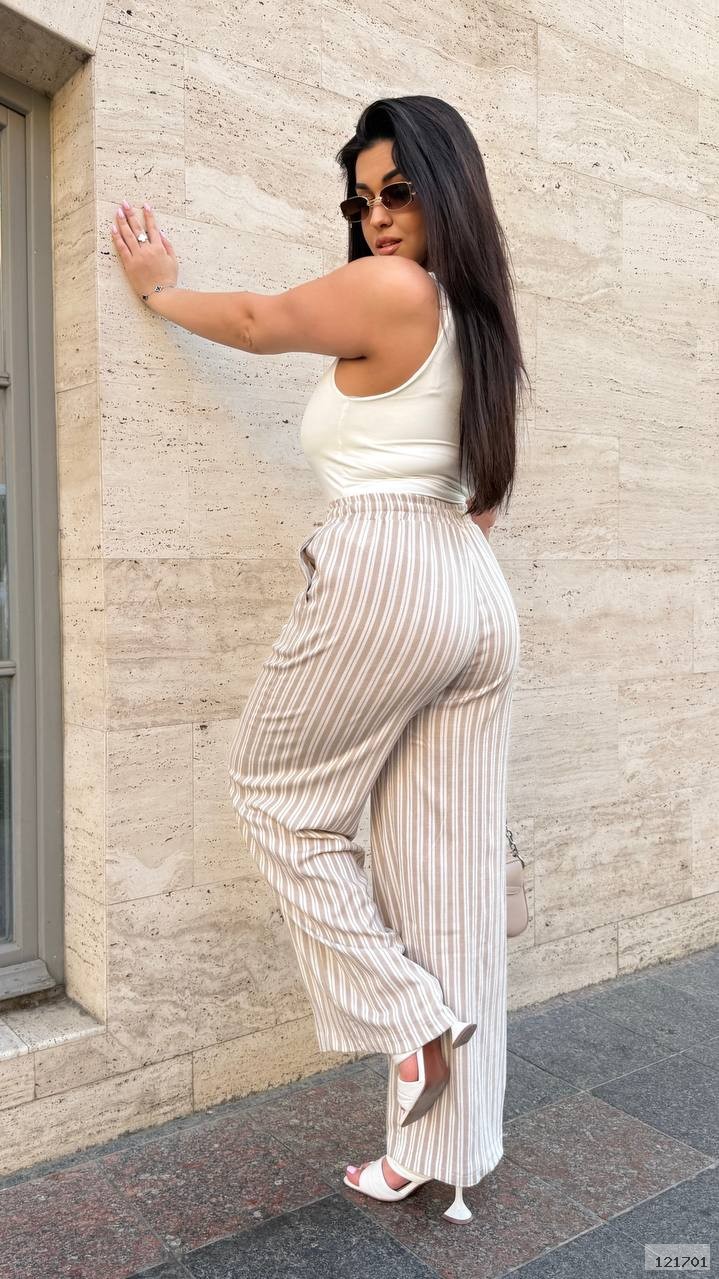Штани - палаццо, дуже зручні, достатньо широкі але не заважають. Не парить, дуже легкий та зручний! Пояс на резинці, регулюється куліскою
