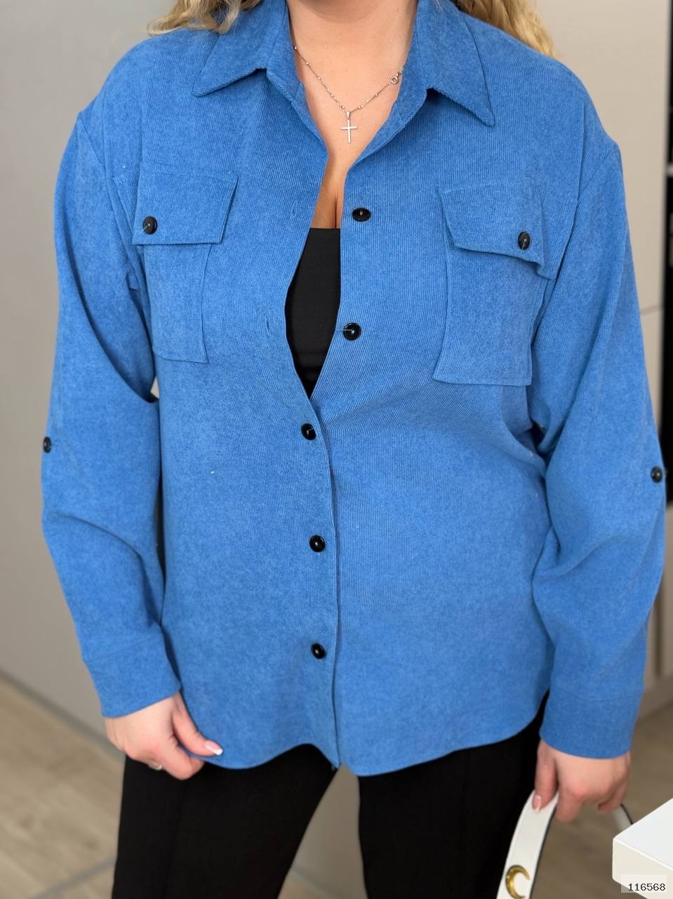 Вельветова сорочка, вільного фасону, дуже гарна якість тканини та пошиву. Рукавчик регулюється по довжені, тому підійде і на теплі весняні дні. Універсальна модель та гарні кольори що підійдуть під все