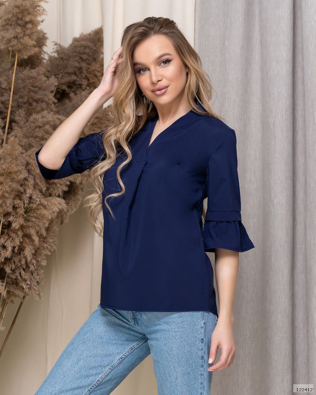 Повсякденна блуза прямого крою з V-образним вирізом Рукав 3/4 .