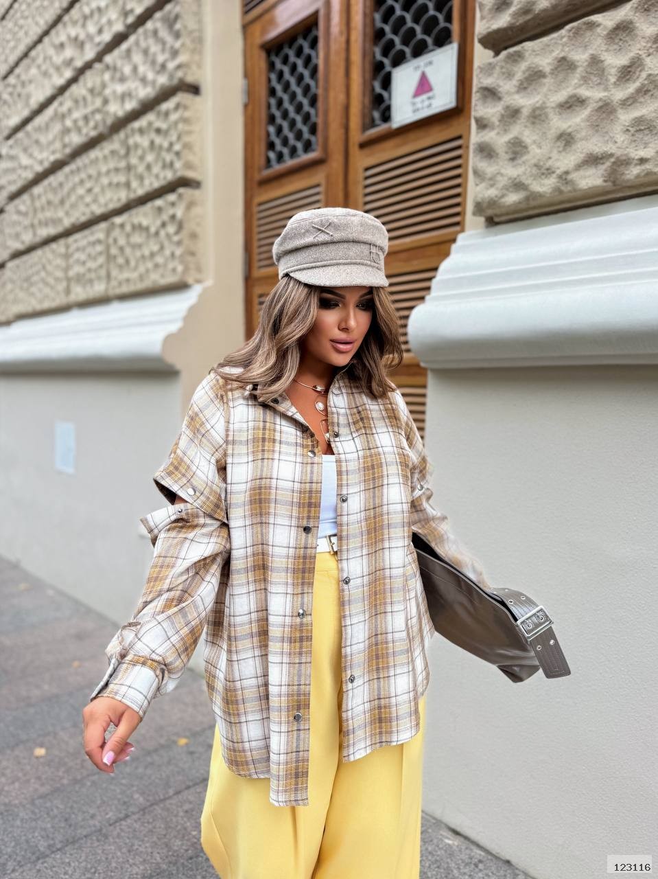 Стильна сорочка в клітинку зі відстібними рукавами.Сорочка трансформер.Рукава на кнопці.