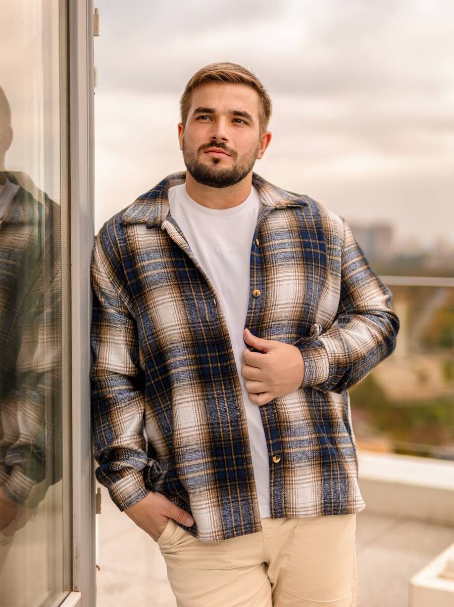 Комфортна сорочка в клітинку з м’якої фланелі.Класичний крій,комір-стійка,довгі рукави з манжетами на ґудзиках.