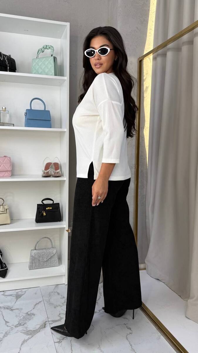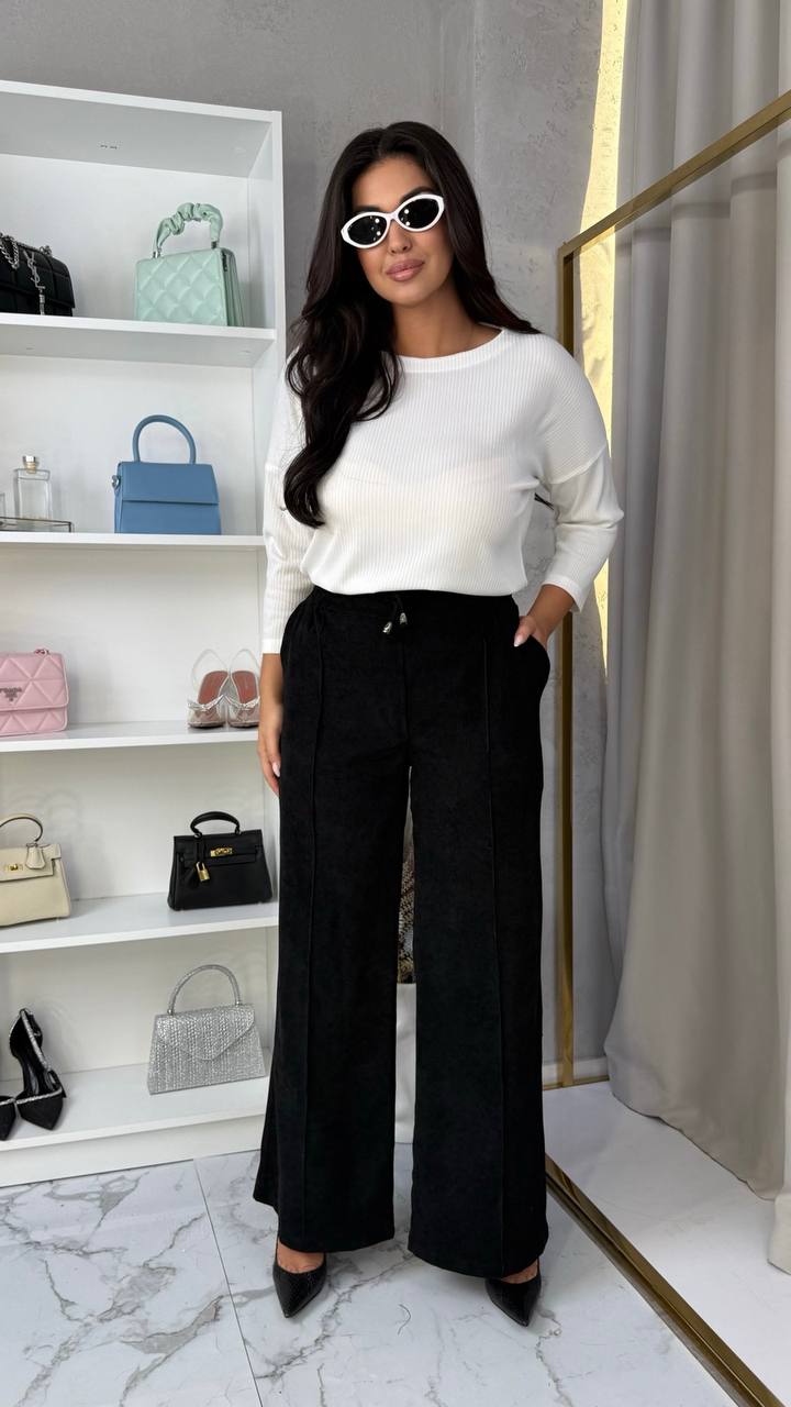 ВЕЛЬВЕТОВІ БРЮКИ ПРЯМОГО КРОЮ зі строчкою по переду.