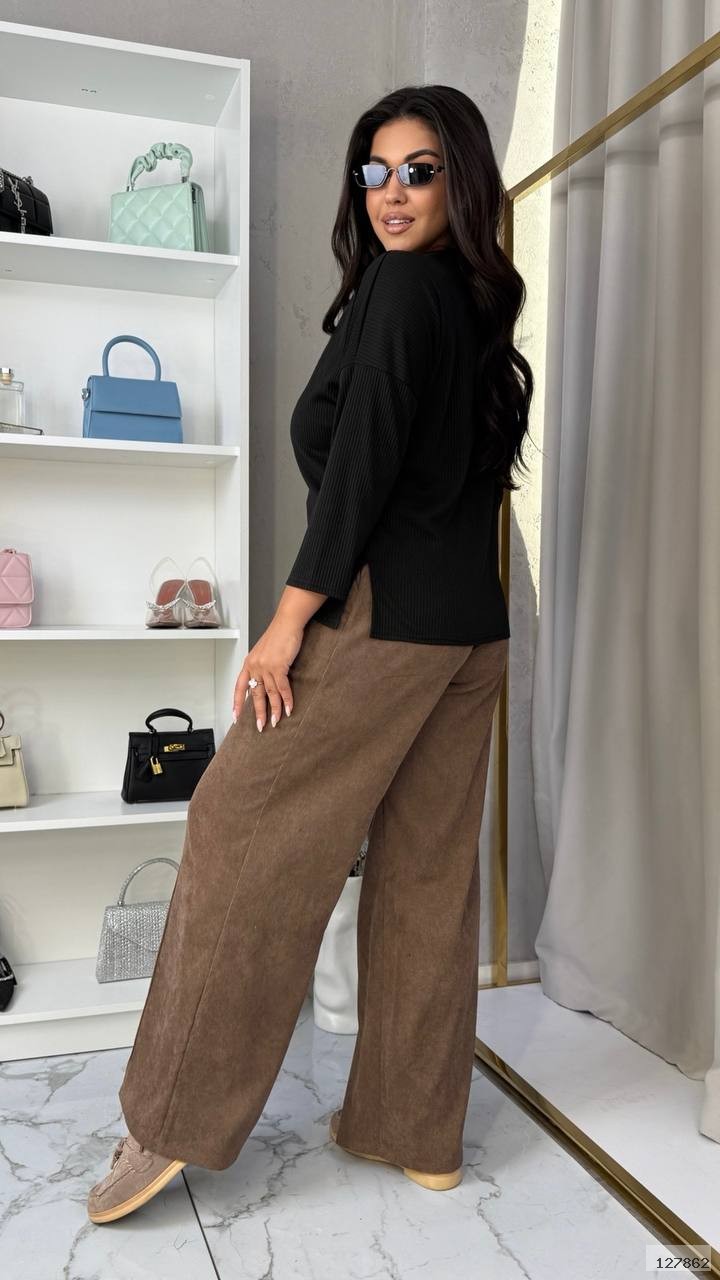 ВЕЛЬВЕТОВІ БРЮКИ ПРЯМОГО КРОЮ зі строчкою по переду.