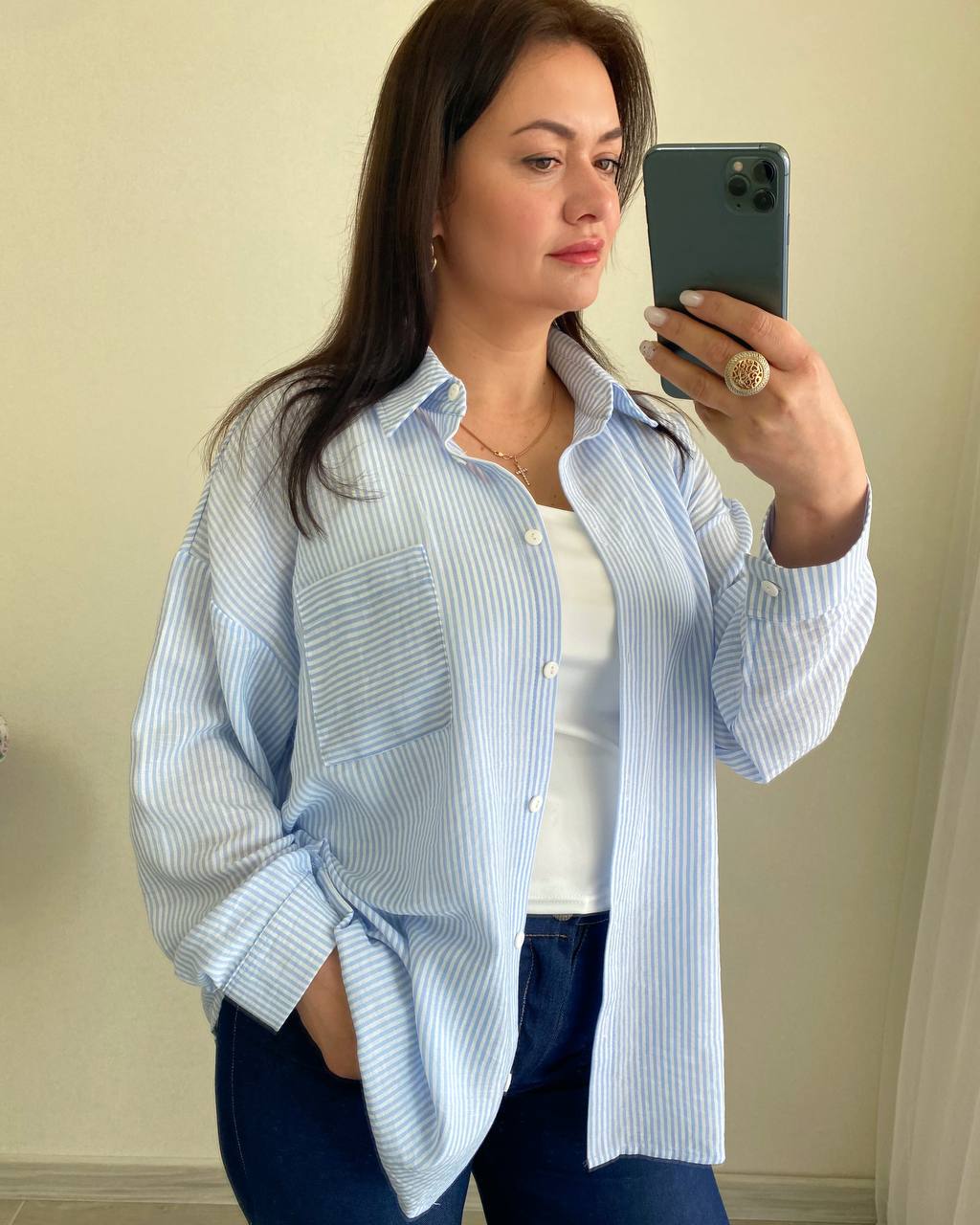 Сорочка оверсайз, з легкого тоненького льону, застібається на ґудзики