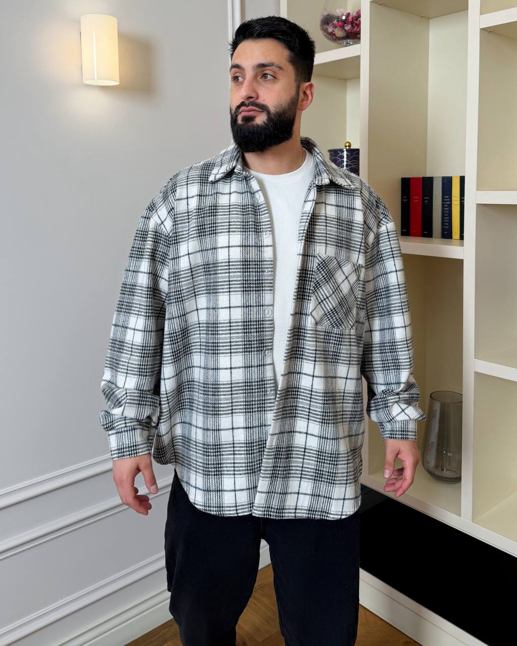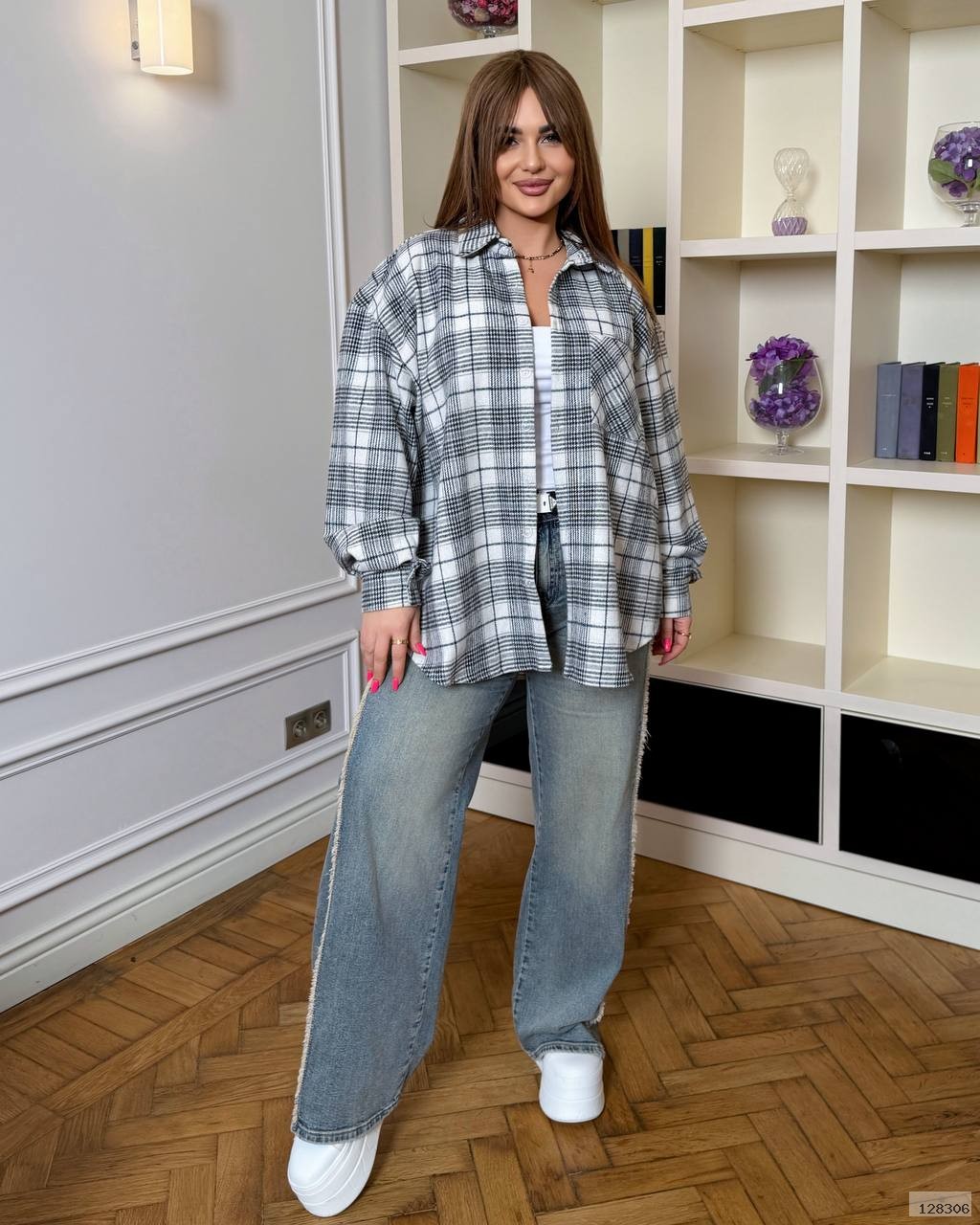 Стильна сорочка в клітинку:вільний крій,комір і довгі рукави з манжетами на ґудзиках.Преміальна якість пошиття!