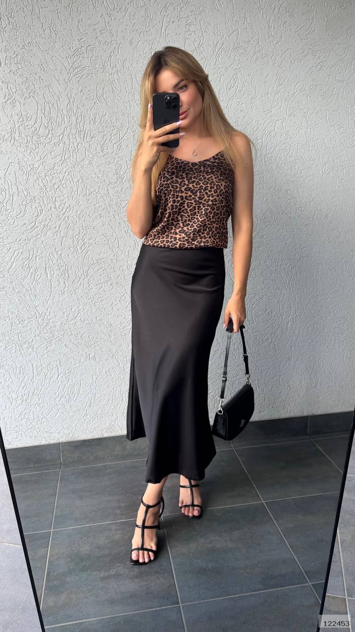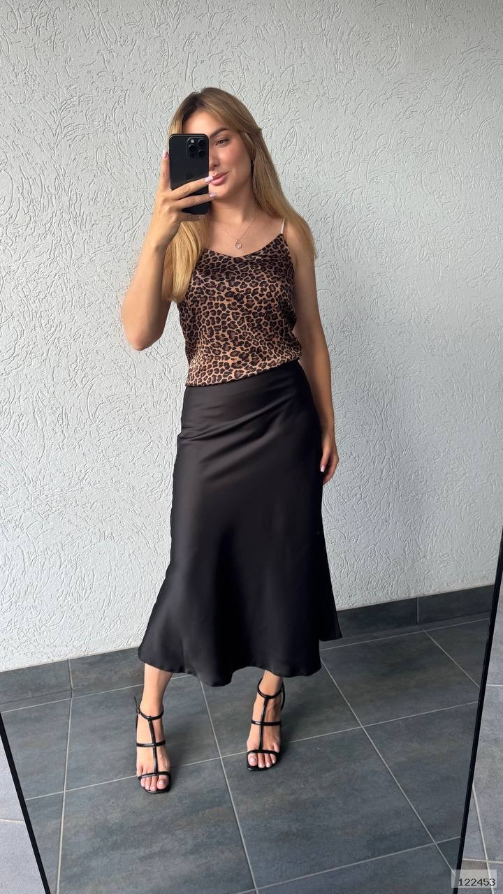 Спідниця міді, талія на резинці, тканина трохи тягнеться. Тканина приємна до тіла, дуже гарно спадає