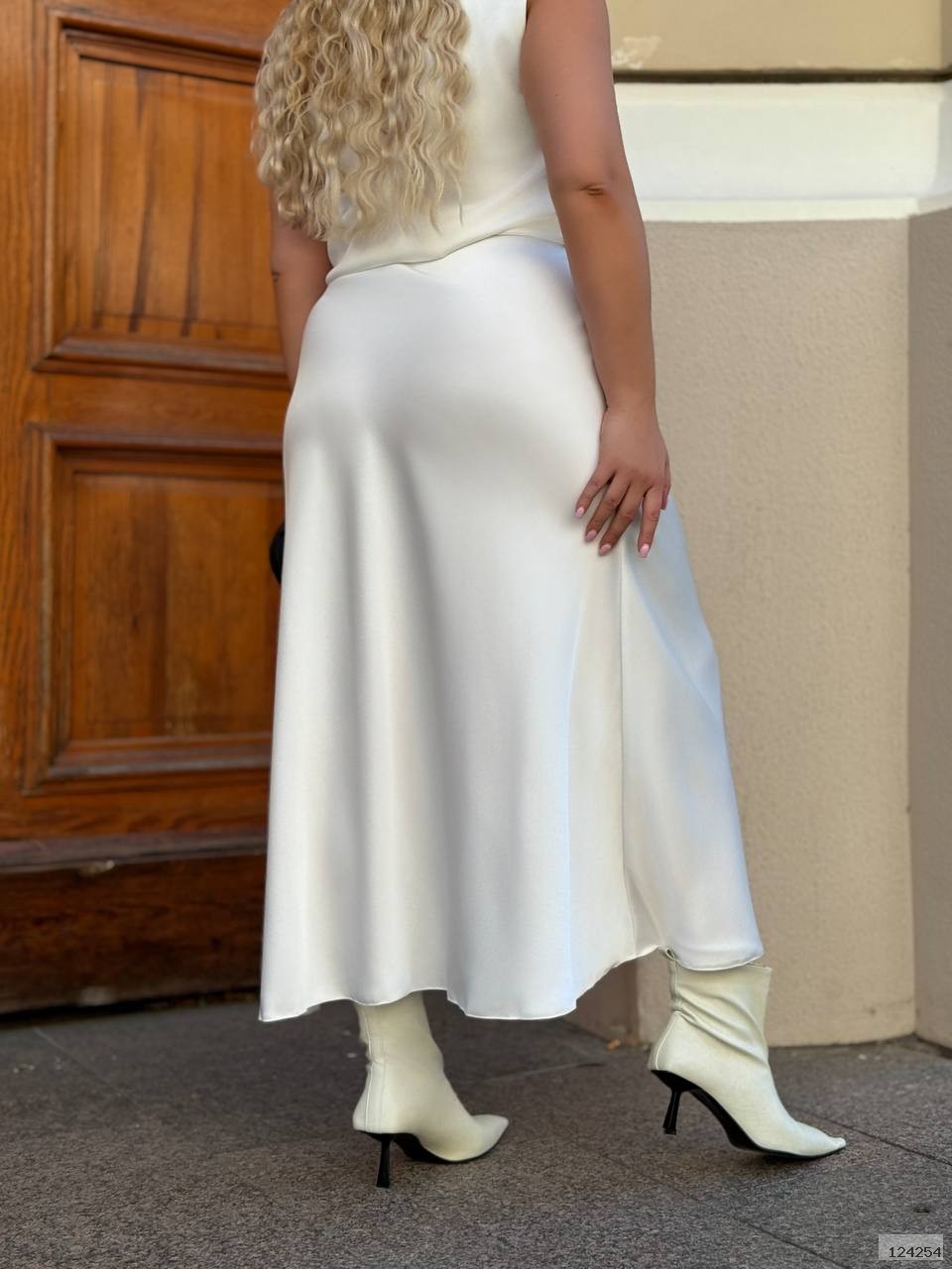 Спідниця міді з королівського атласу — це витончений елемент гардеробу, який поєднує розкіш та комфорт. Виготовлена з благородного, гладкого атласу з приємним шовковистим блиском, вона ідеально підходить як для урочистих подій, так і для елегантних повсякденних образів.