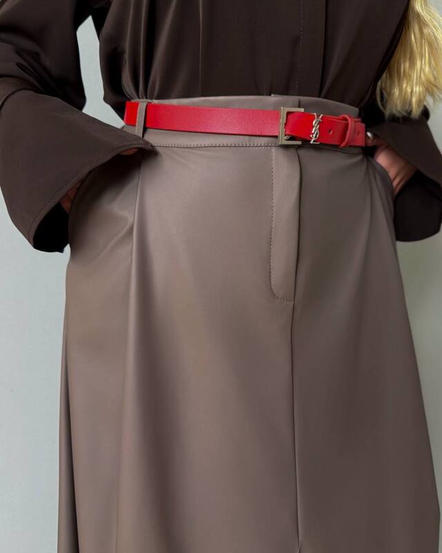 Спідниця з еко- шкіри, що додасть образу виразності! Стильний А -силует, вільний крій, складки по переду, зручні косі кишені в боках. Пояс частково на резинці, застібка на блискавці на поясі гачок.