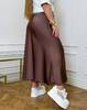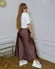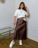 Елегантна та жіночна спідниця довжини міді, яка додає образу легкості та витонченості. Атласна тканина красиво переливається на світлі та м’яко лягає по фігурі, створюючи стильний і сучасний образ.