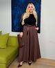 СПІДНИЦЯ-БРЮКИ - модний тренд сезону додає жіночності та елегантності образу. Вільний крій складки по переду ,висока талія , пояс частково на гумці. Шльовки , пояс з еко шкіри в комплекті Косі кишені в бічних швах.