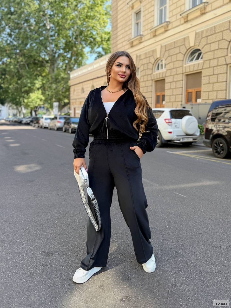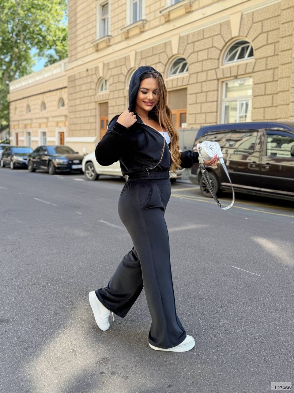 Прогулянковий трендовий костюм з велюру складається з вкороченої кофти та зручних штанів. М’який матеріал дарує комфорт і стиль одночасно. Ідеальний вибір для повсякденних образів, які хочеться зробити модними та затишними.