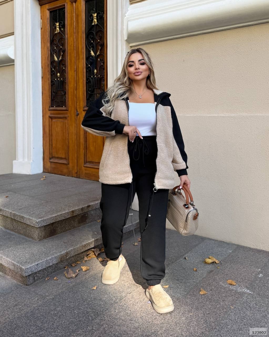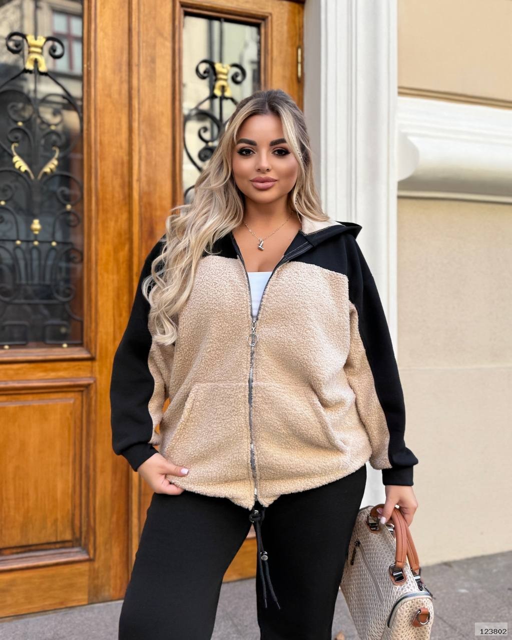 | Ткань: | еко баранчик на флісі, комбінований чорною Хб стрейч триниткою на флісі |