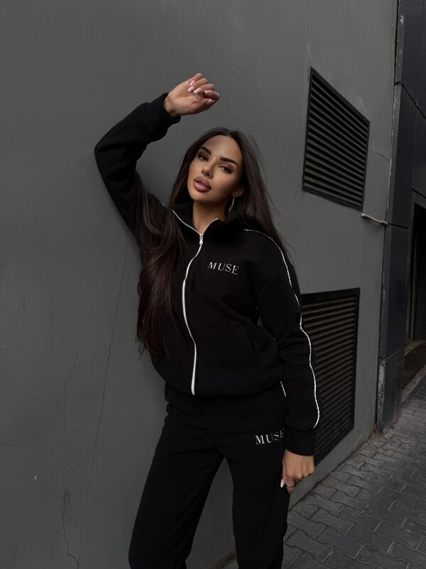 Кофта вільного крою, застібаєтся на блискавку, 2-і кишені, ворот стійка. Штани джогери, 2-і кишені. Кофта та штани оброблені кантом.