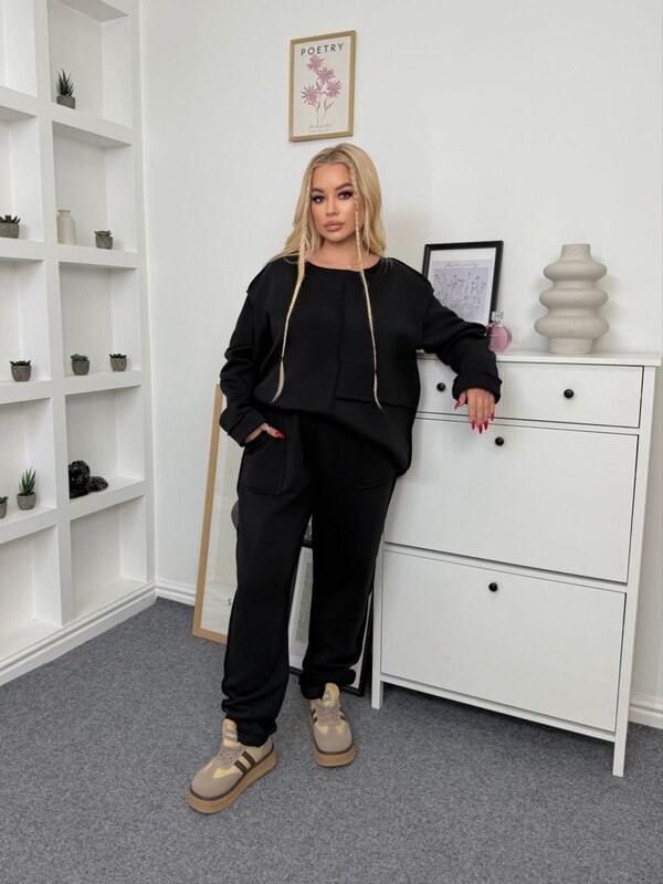 Осінньо-зимовий теплий спортивний костюм. Теплий світшот, без каптуру, з декоративними швами назовні. Штани з кишенями, на поясі гумка, знизу манжета.