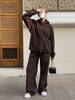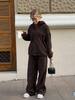 Капюшон подвійний , кофта по низу затягується , штанці на високій посадці вільного крою і також по низу регулюється ширина за рахунок резинок