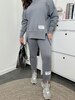 Тканина еластична, має гарну розтяжність. Костюм декорований нашивками, кофта вільна, ззаду подовжена.