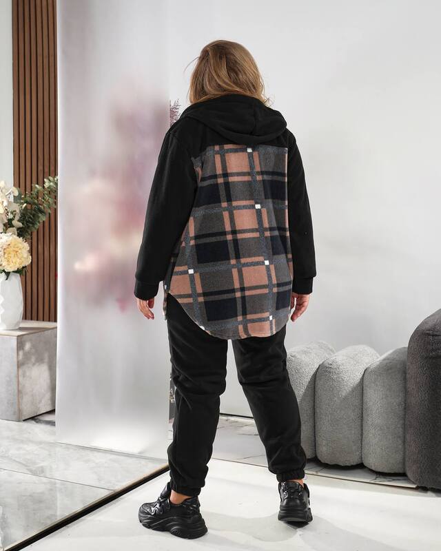 Сорочка з капюшоном та модним клітинчастим принтом створює ефектний образ, а зручні штани дарують комфорт і свободу рухів. Чудово підходить для прогулянок, відпочинку та повсякденного стилю.