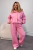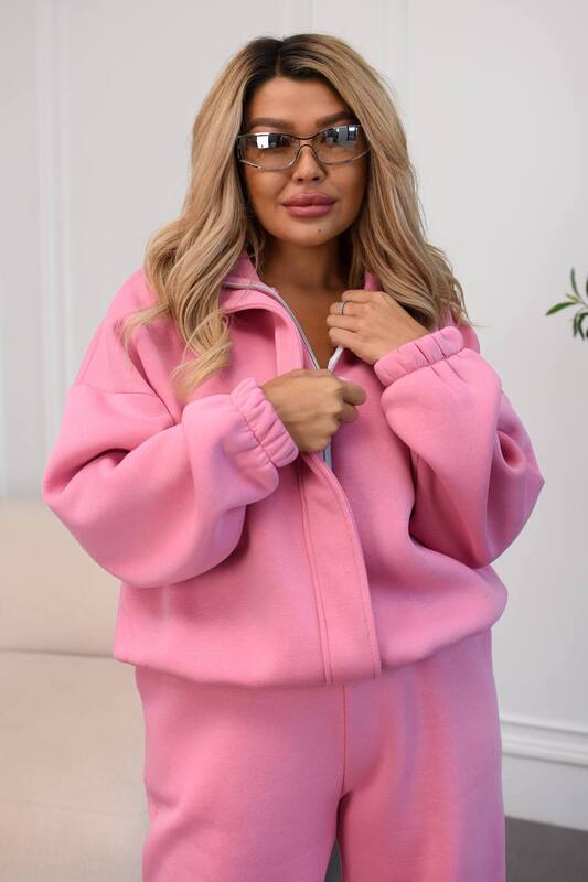 Кофта на блискавці, ховає спеціальна планка. Низ кофти на резинці. Штанці палаццо, низ регулюється регуляторами.