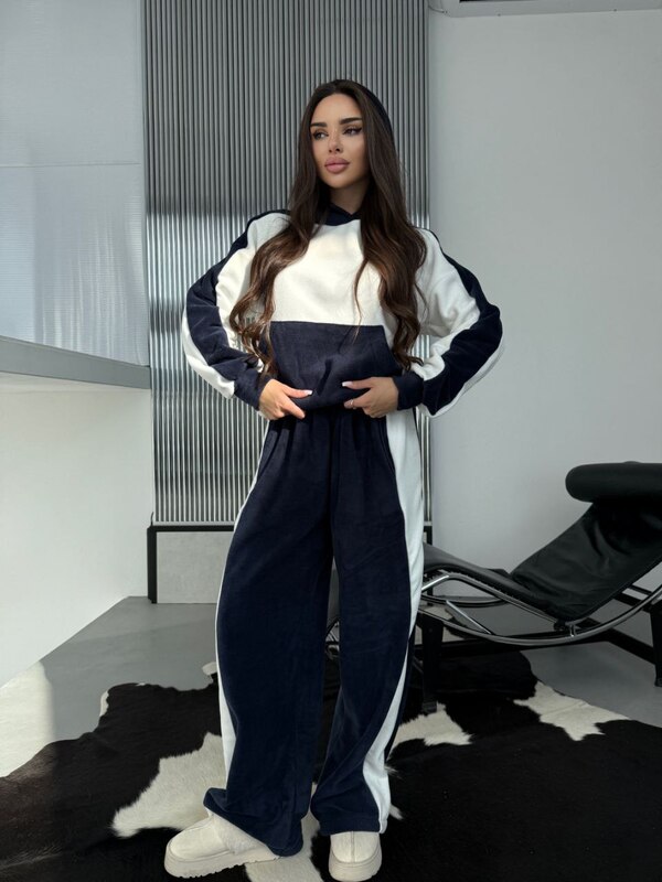 Кофта вільного крою з капюшоном та кишеня кенгуру. Штани палаццо 2-і кишені.