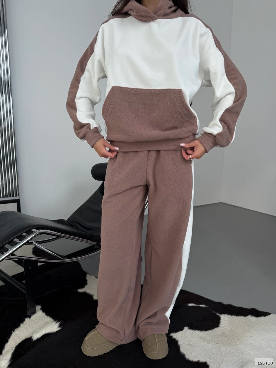 Кофта вільного крою з капюшоном та кишеня кенгуру. Штани палаццо 2-і кишені.