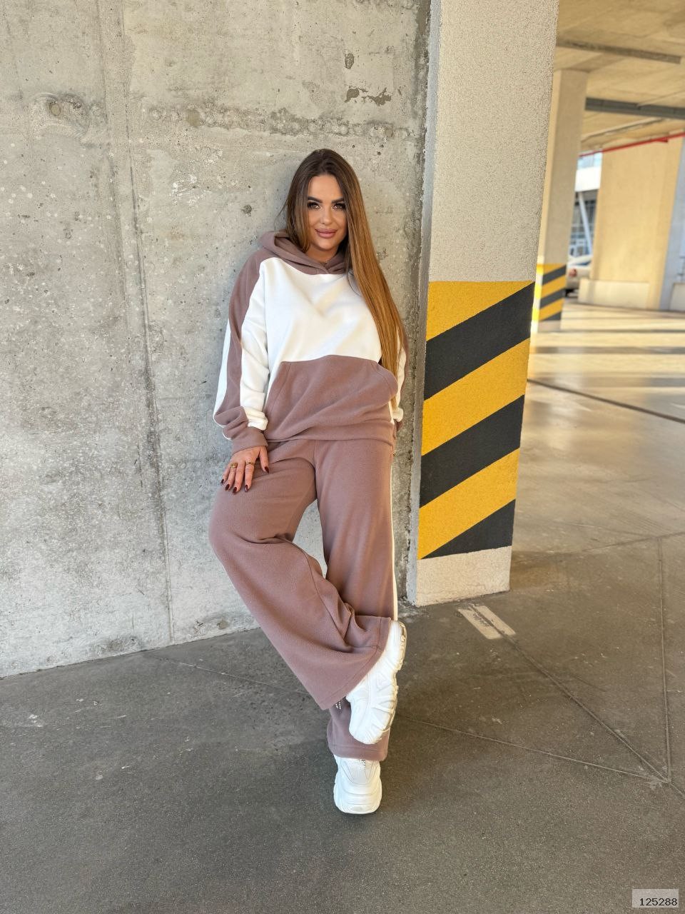М’який приємний трикотаж із начосом забезпечує комфорт навіть у прохолодну погоду. Контрастні вставки візуально струнко витягують силует, додаючи образу динамічності та стилю.