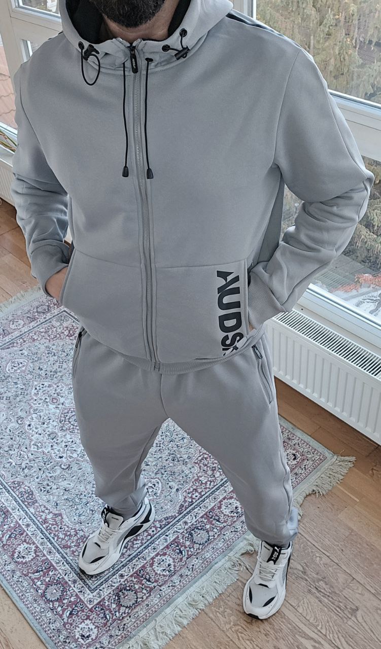 Кофта на блискавці з капюшоном і зручними кишенями,на рукавах та внизу-резинка (рібана).Штани з еластичною резинкою та шнурком на талії, з кишенями на блискавках,внизу — резинка (рібана).