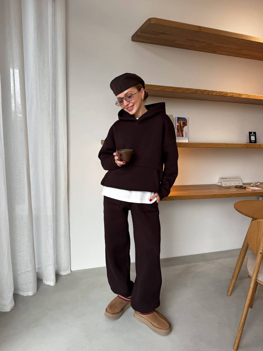 М’який костюм із худі та штанами — ідеальний вибір для щоденного комфорту. Теплий, приємний до тіла, не втрачає форму навіть після десятків прань.