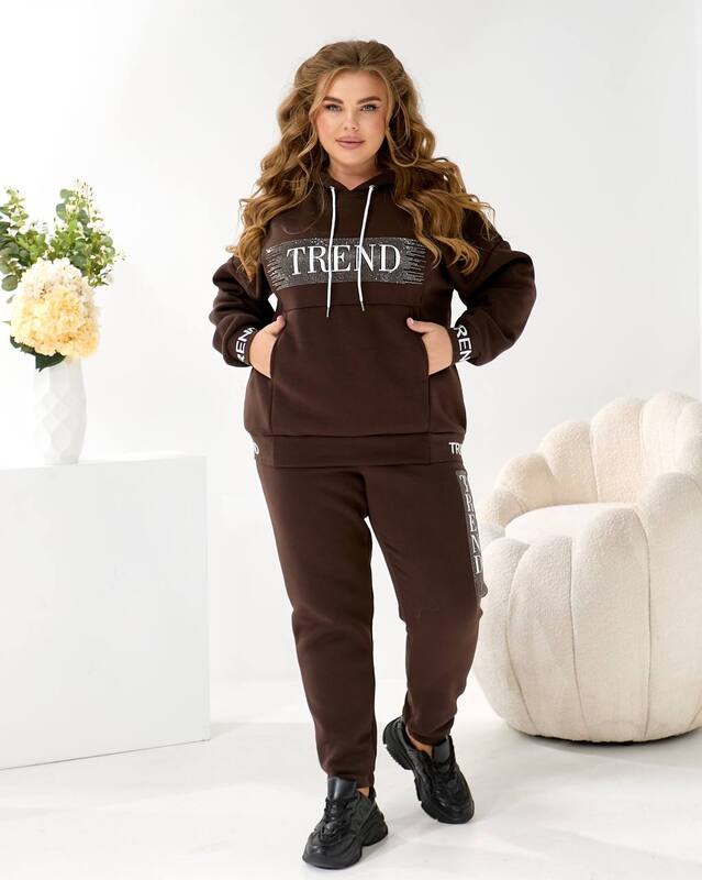 Худі Oversize з капюшоном та яскравим акцентом: принт TREND з мерехтливими стразами/блиском (видно на фото! ) + Джогери з м'якої тринитки на флісі!