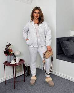 Теплий спортивний костюм з турецької тринитки: кофта на Змійці з подвійним капюшоном, по низу канатик з фіксатором + джогери із високою посадкою, з карманами у бічних швах, на поясі та по низу м'яка гумка.