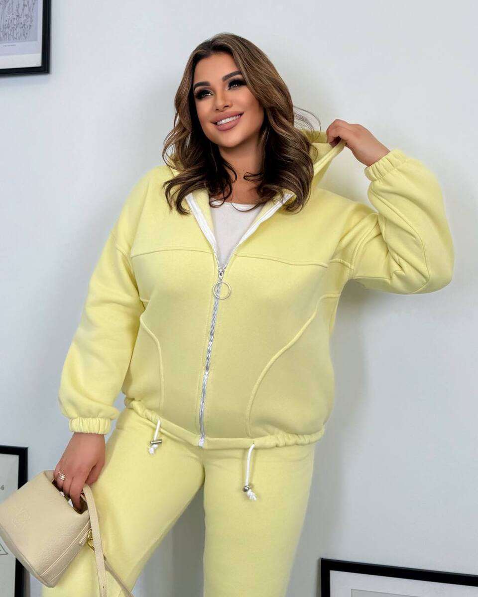 Теплий спортивний костюм з турецької тринитки: кофта на Змійці з подвійним капюшоном, по низу канатик з фіксатором + джогери із високою посадкою, з карманами у бічних швах, на поясі та по низу м'яка гумка.
