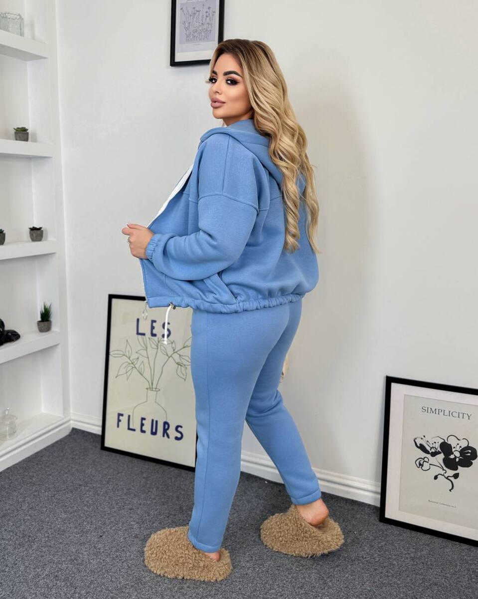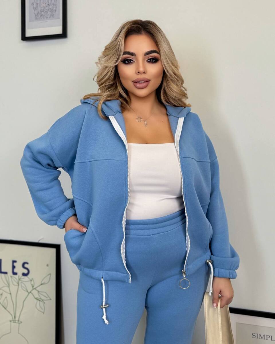 Теплий спортивний костюм з турецької тринитки: кофта на Змійці з подвійним капюшоном, по низу канатик з фіксатором + джогери із високою посадкою, з карманами у бічних швах, на поясі та по низу м'яка гумка.
