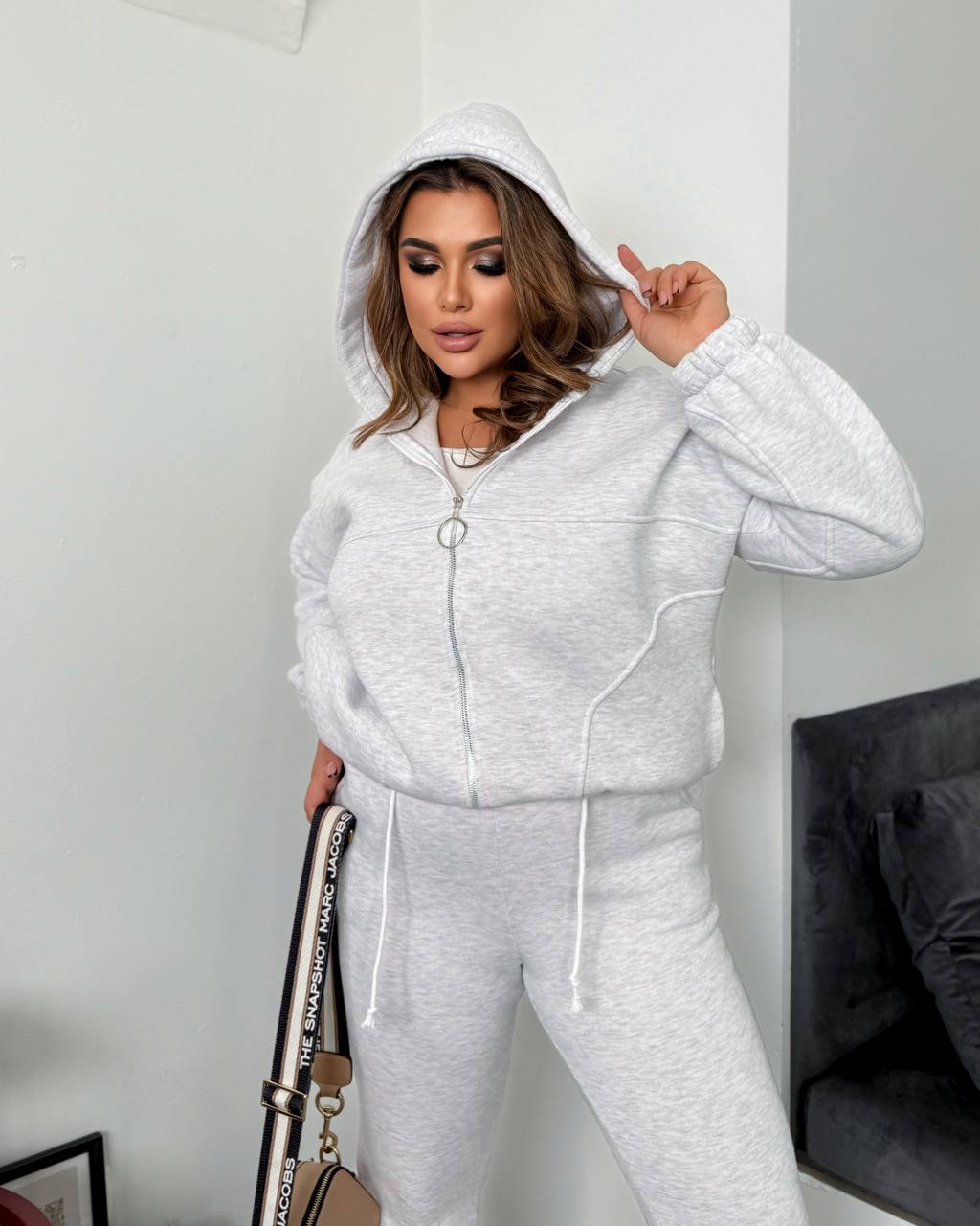 Теплий спортивний костюм з турецької тринитки: кофта на Змійці з подвійним капюшоном, по низу канатик з фіксатором + джогери із високою посадкою, з карманами у бічних швах, на поясі та по низу м'яка гумка.