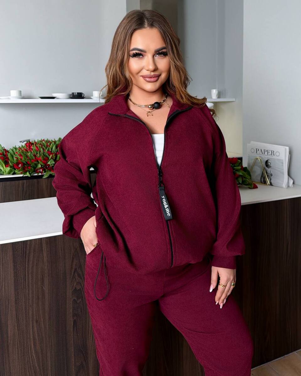Спортивний костюм опис: кофта на змійці з кішкнями, по низу фіксатор з утяжкою + джогери з середньою посадкою, з кішенями.