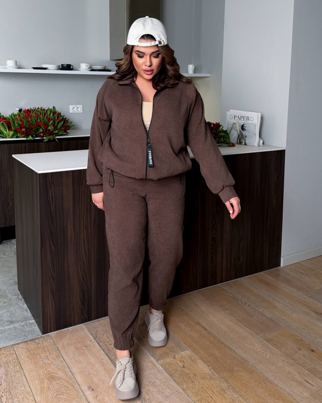 Спортивний костюм опис: кофта на змійці з кішкнями, по низу фіксатор з утяжкою + джогери з середньою посадкою, з кішенями.