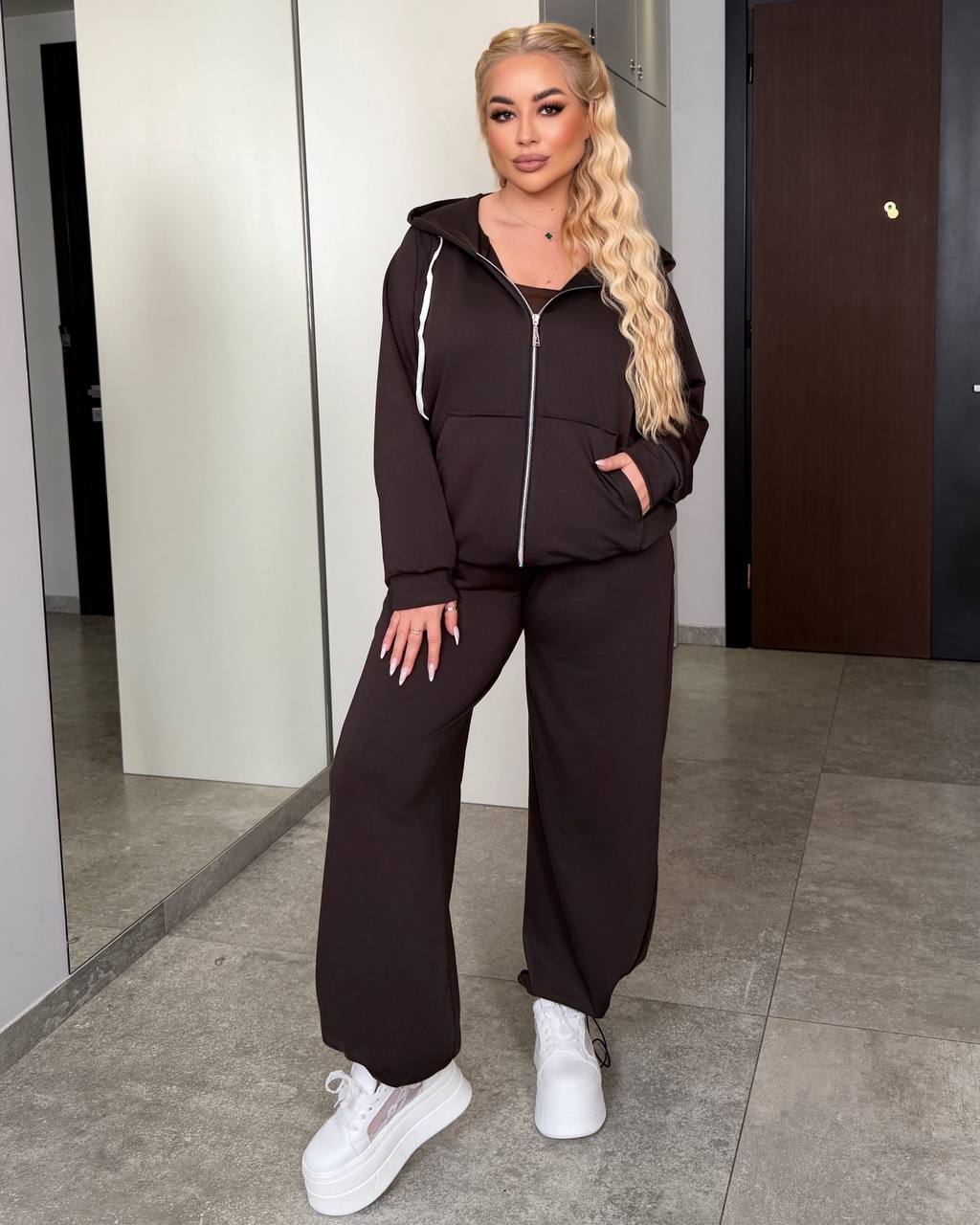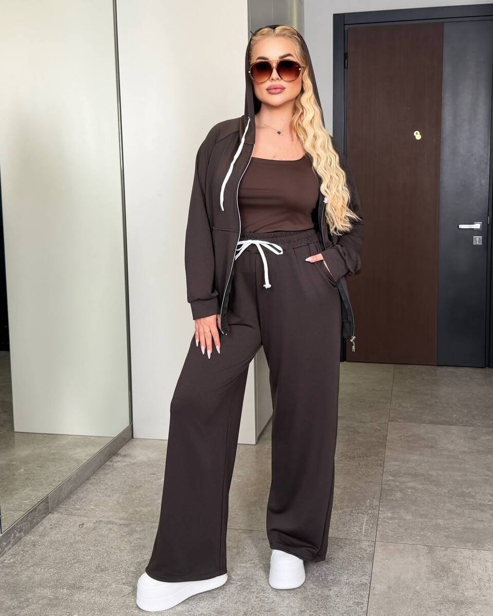 Стильний спортивний костюм на вечірній період. Кофта на блискавці. Штани палацо, але мають фіксатори які дуже легко зроблять ваші штани джогерами.