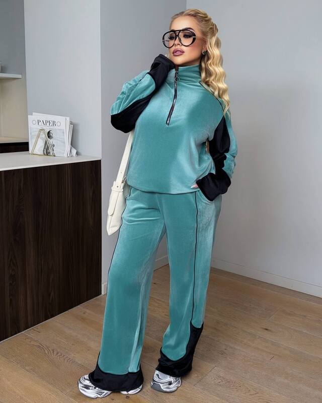 Стильний спортивний костюм на вечірній період. Кофта комір на блискавці. Штани палацо, але мають фіксатори які дуже легко зроблять ваші штани джогерами.