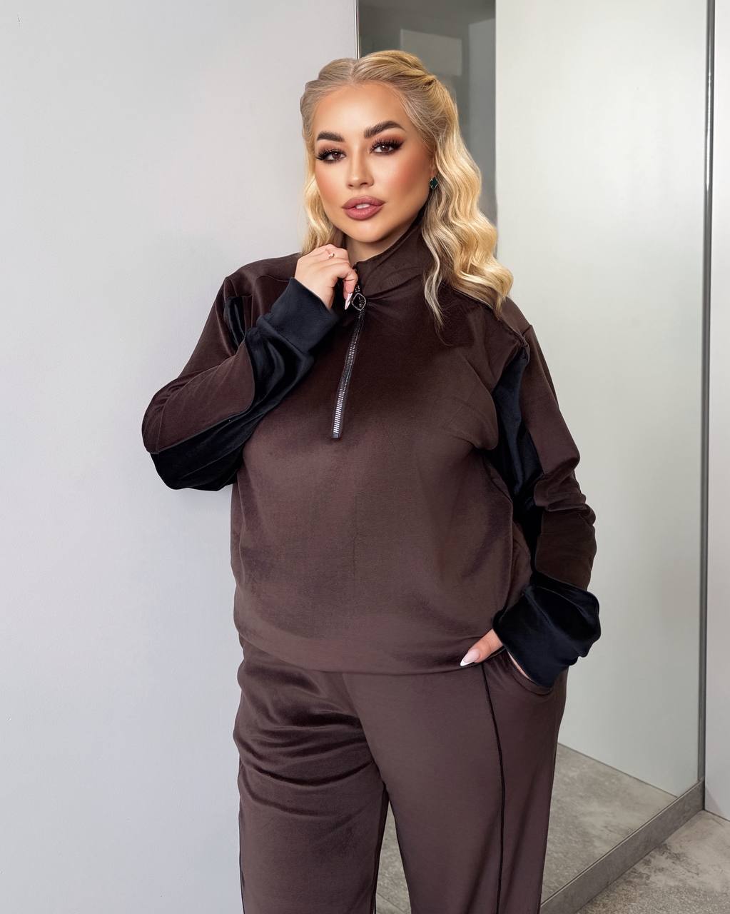 Стильний спортивний костюм на вечірній період. Кофта комір на блискавці. Штани палацо, але мають фіксатори які дуже легко зроблять ваші штани джогерами.