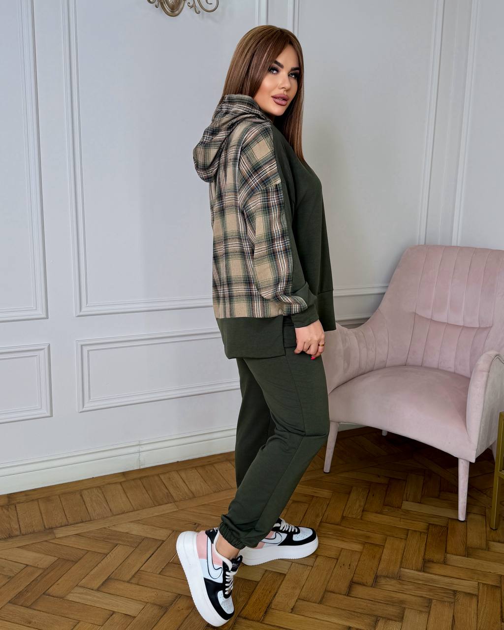 Стильний комплект для прогулянок.Ідеально лягає по фігурі.Костюм у якому ти виглядаєш стильно.Вільний крій світшоту ,надає легкість рухам.Джогери з високою посадкою.
