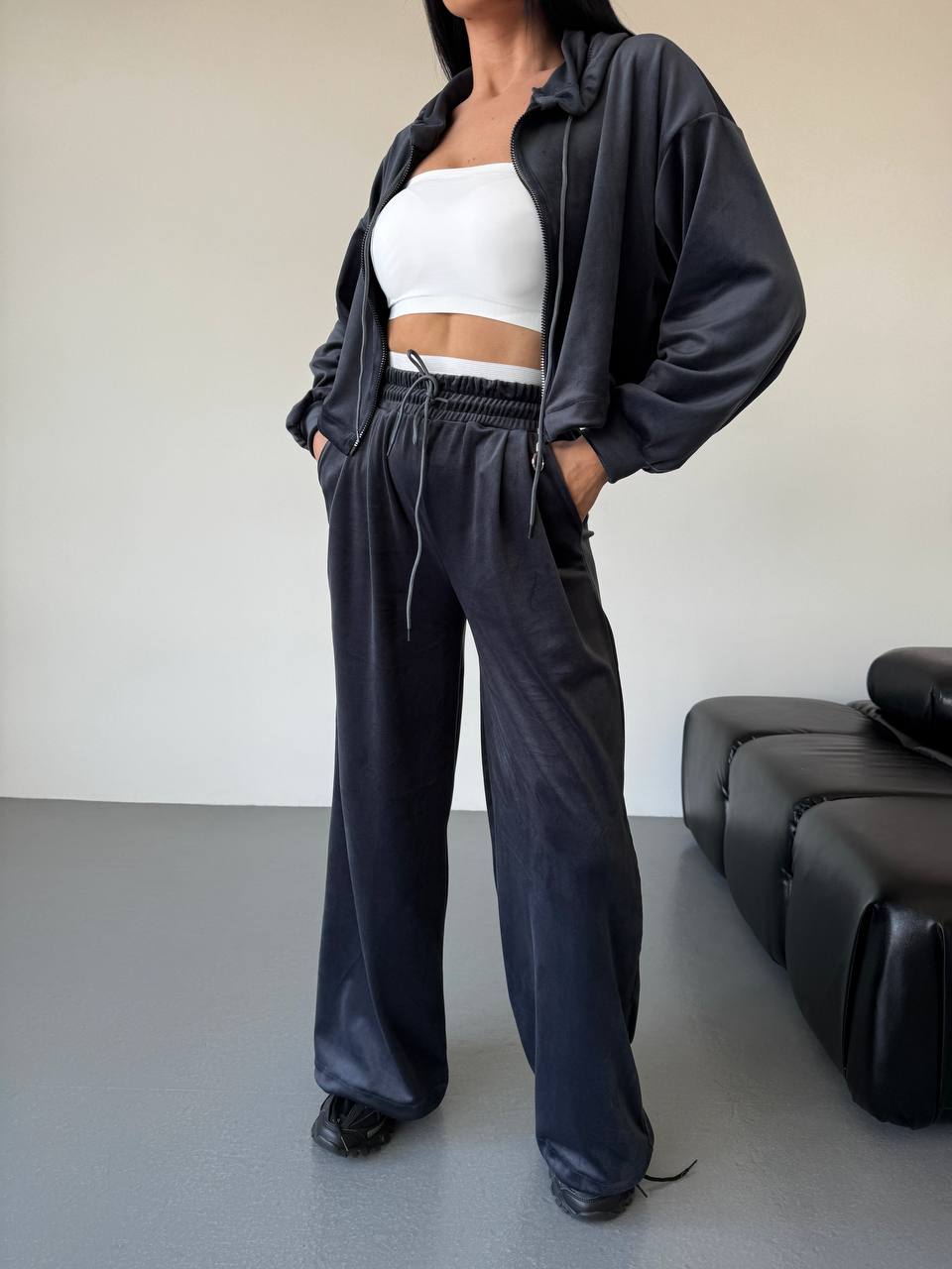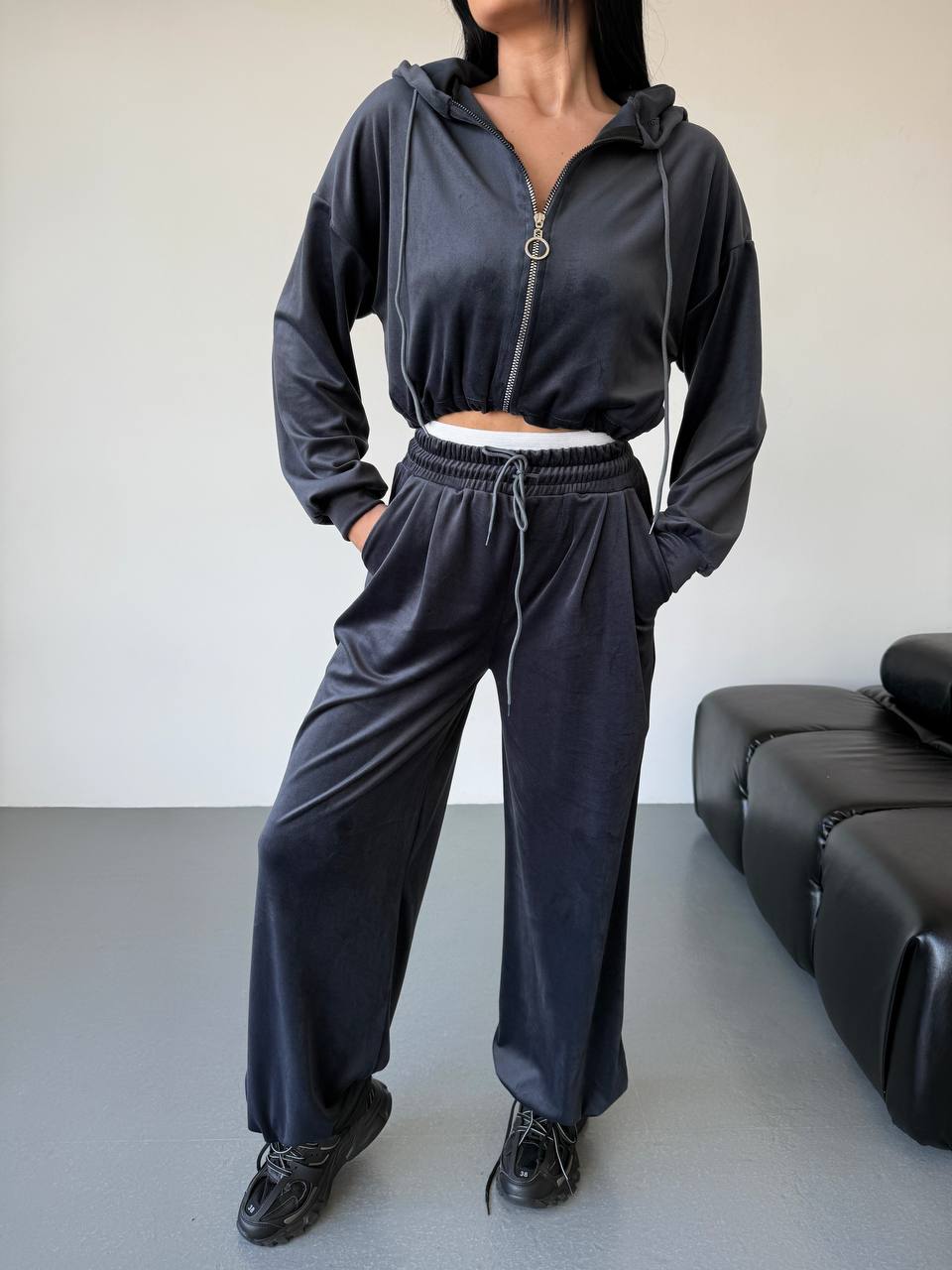 Відчуй максимальний комфорт та ніжність у нашому новому костюмі. М’якенький велюр, який просто не хочеться знімати! Ідеальна посадка та актуальні кольори для твоїх найстильніших образів. Худі та штани регулюються затяжками. На штанах вшита біла резинка
