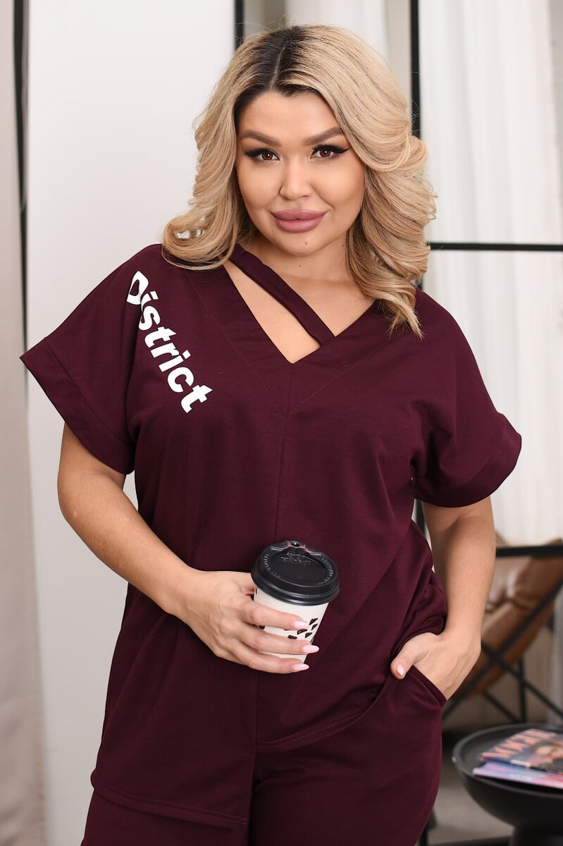 Легкий літній костюм двійка, який точно стане фаворитом вашого гардеробу! Асиметрична футболка з оригінальним написом додає образу динаміки, а бриджі — зручності.