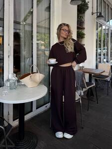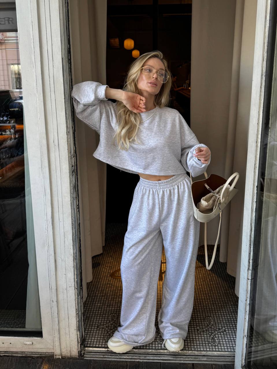 Кроп-світшот із спущеним плечем та широкі штани на резинці — ідеальний дует для прогулянки містом, кави з подругою чи просто chill-дня вдома. Виглядай модно, навіть коли максимально розслаблена