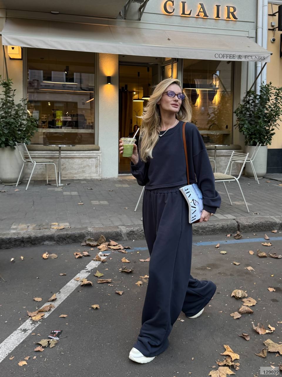 Кроп-світшот із спущеним плечем та широкі штани на резинці — ідеальний дует для прогулянки містом, кави з подругою чи просто chill-дня вдома. Виглядай модно, навіть коли максимально розслаблена