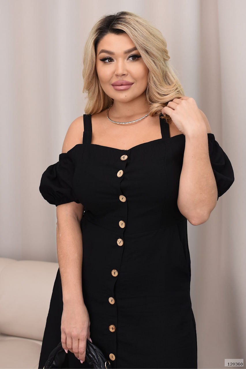 Ця приталена сукня на бретелях — справжня знахідка для літніх днів! Натуральний льон жатка, гудзики по всій довжині та практичні кишені збоку — усе для вашого комфорту та стильного вигляду.