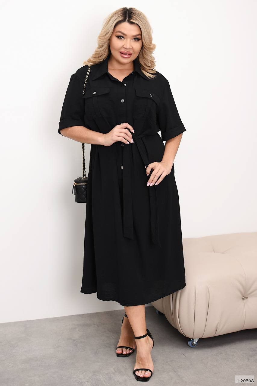 Стильна сукня на гудзикиках ,з накладними кишенями та поясом .Є кишені з боків сукні для зручності .Пояс знімається , можна носити без нього.