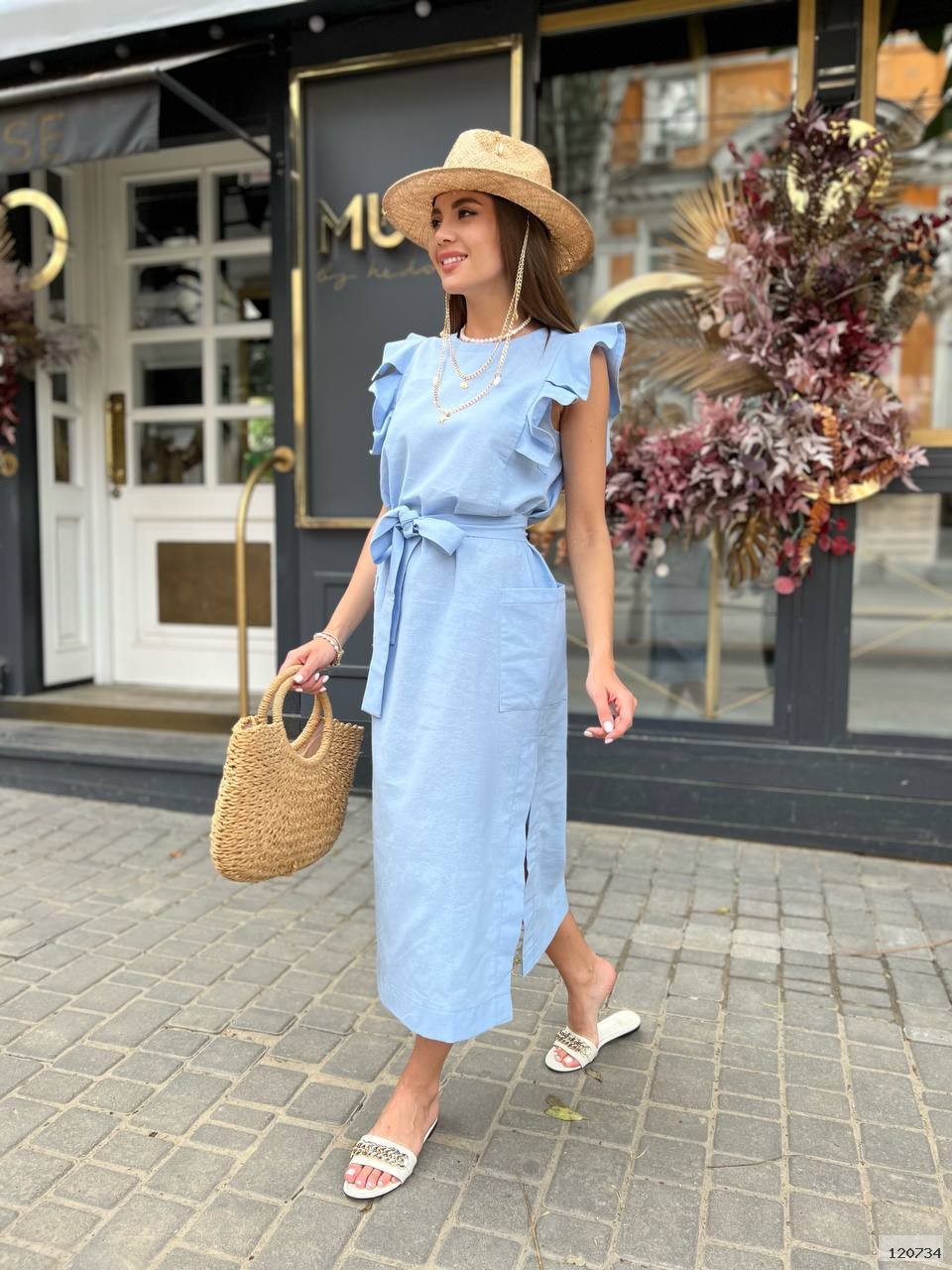 Сукня з льону - що може бути краще на літо. По бокам кишені. Тканиний пояс у комплекті