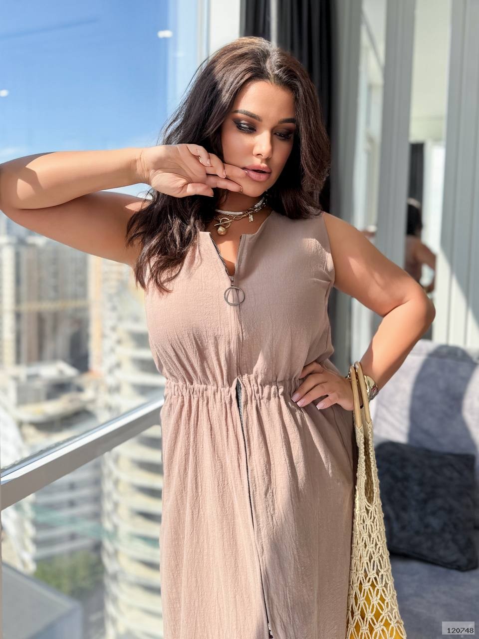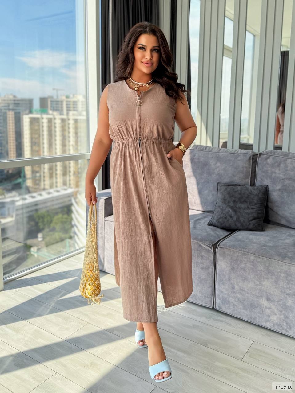 Стильна сукня на двосторонній змійці спереду , з карманами у бічних швах на гумці по талії.