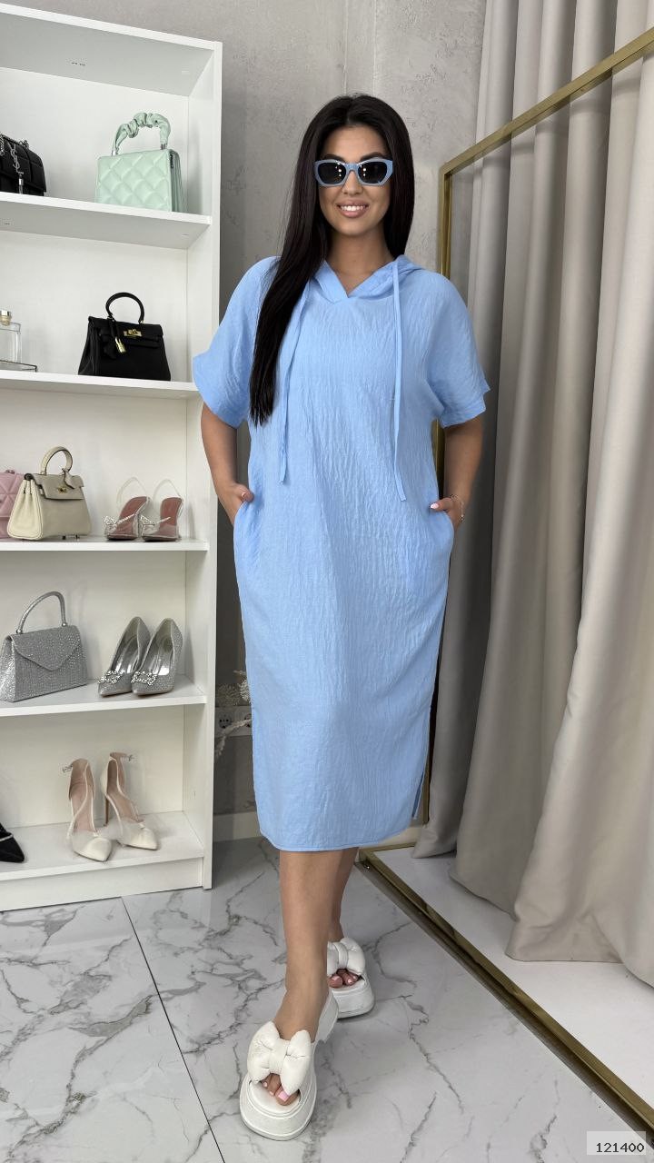 Крутезна сукня вільного крою з капюшоном, бічними кишенями і розрізами.
