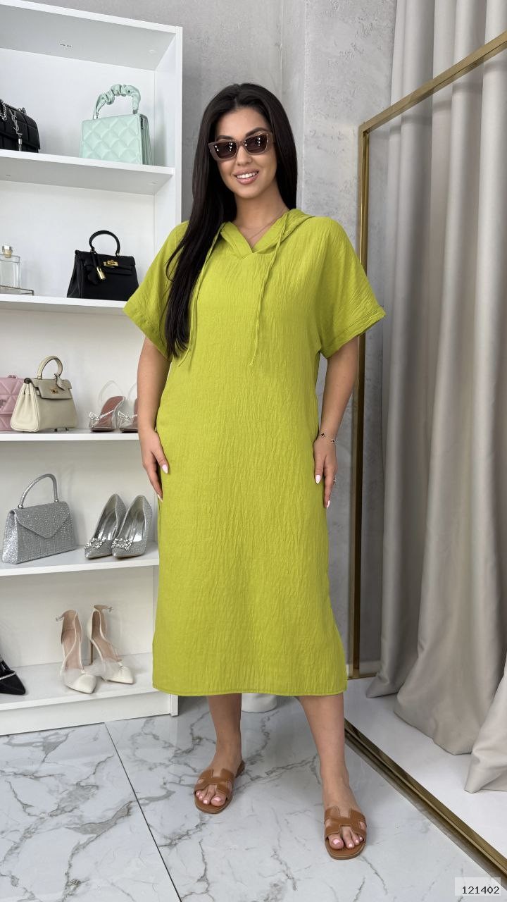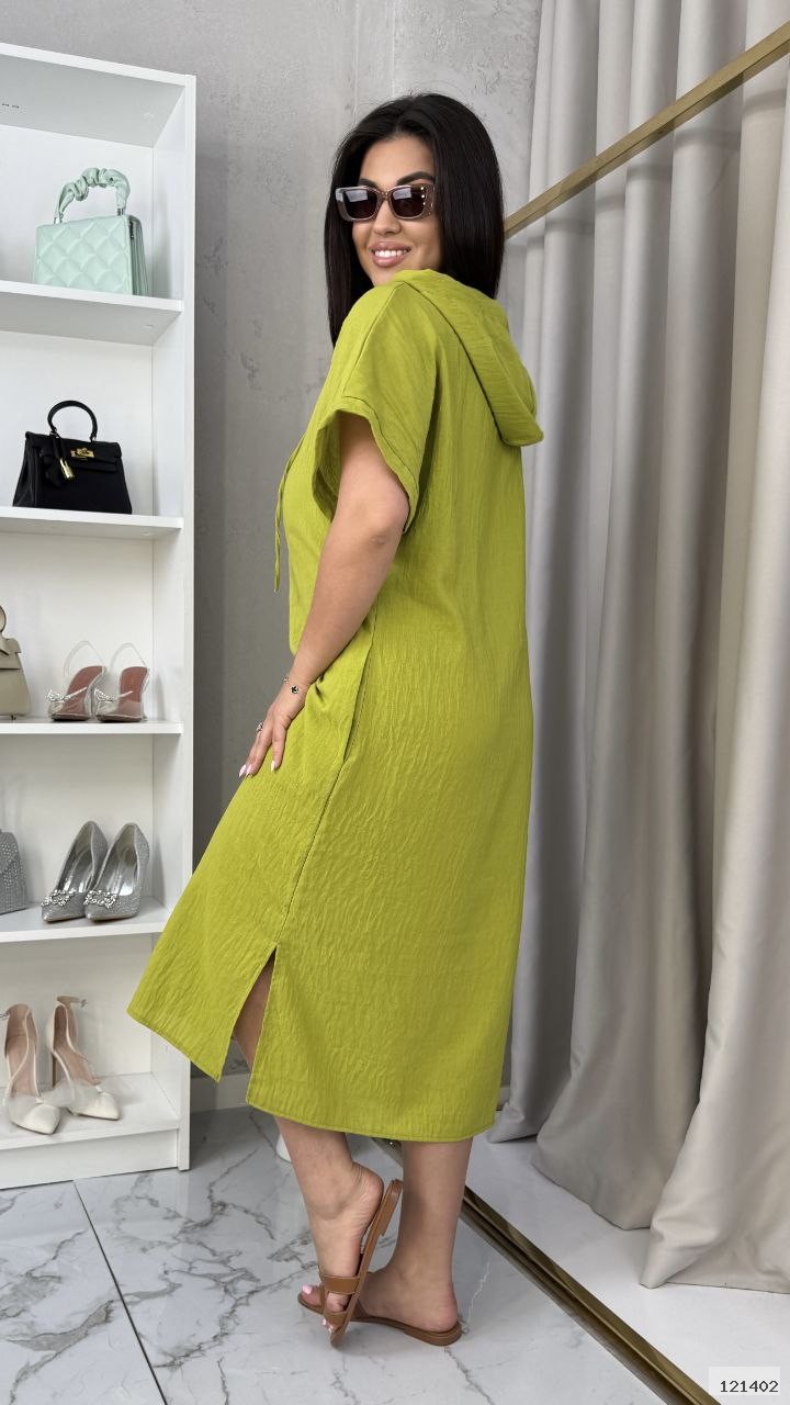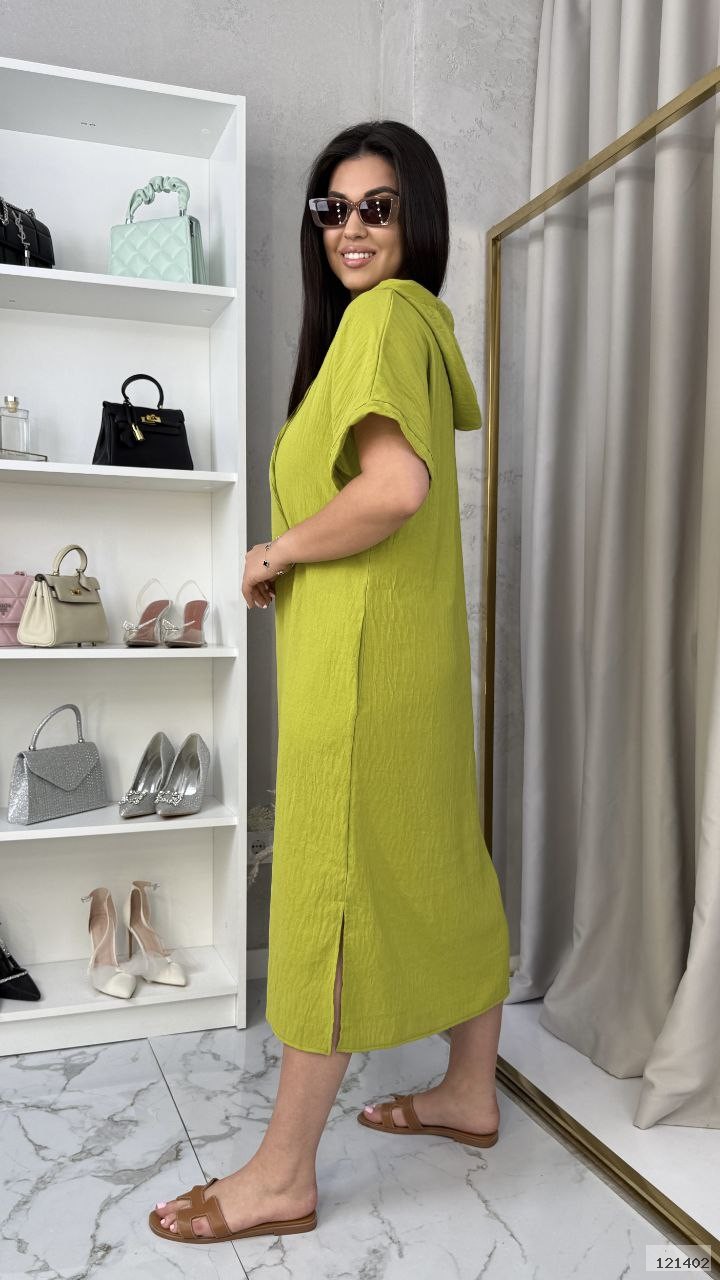 Крутезна сукня вільного крою з капюшоном, бічними кишенями і розрізами.